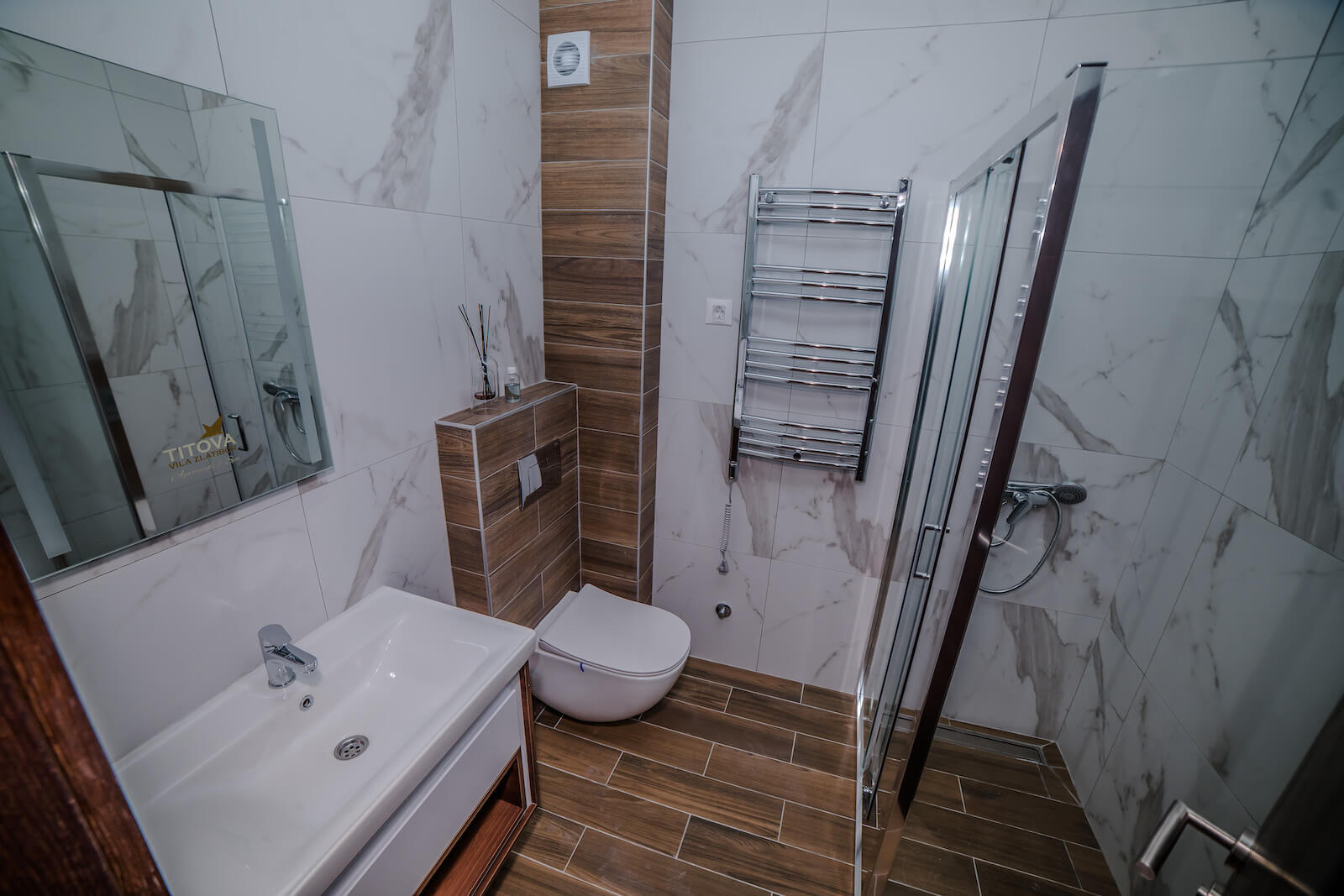 Located in the prestigious Titova Vila complex in Zlatibor, this modern apartment offers a perfect blend of comfort, elegance, and natural surroundings. Surrounded by pine forests and fresh mountain air, it provides a peaceful retreat while being just a short walk from the town center, restaurants, and main attractions. The apartment is fully equipped for a relaxing stay, making it an ideal choice for couples, families, or guests seeking both tranquility and convenience in one of Zlatibor’s most exclusive locations.
